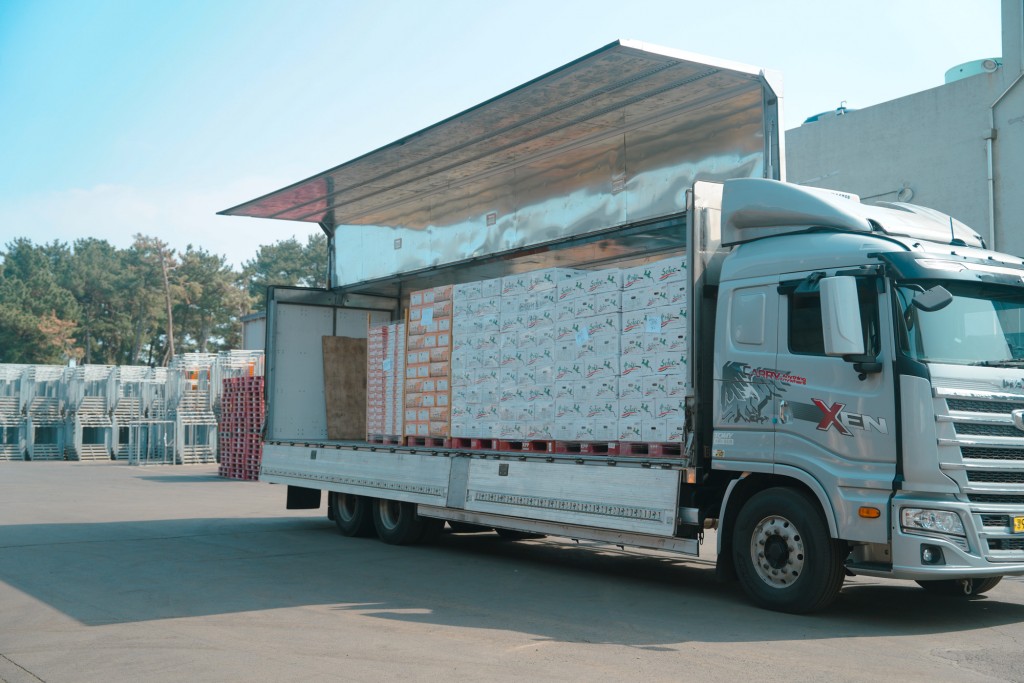 Finally, the boxes are loaded onto temperature-controlled trucks. These shipments are now headed to Los Angeles, bringing the authentic taste of Korea to your local markets.